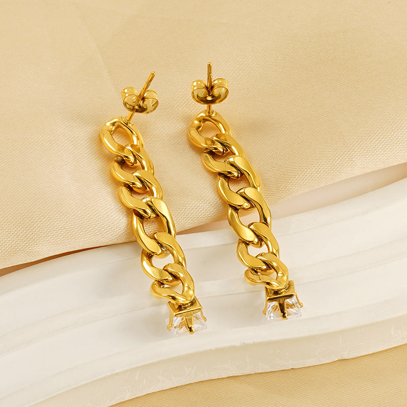 Chain Long Stud Earrings Women’s Fashion Gold Plated