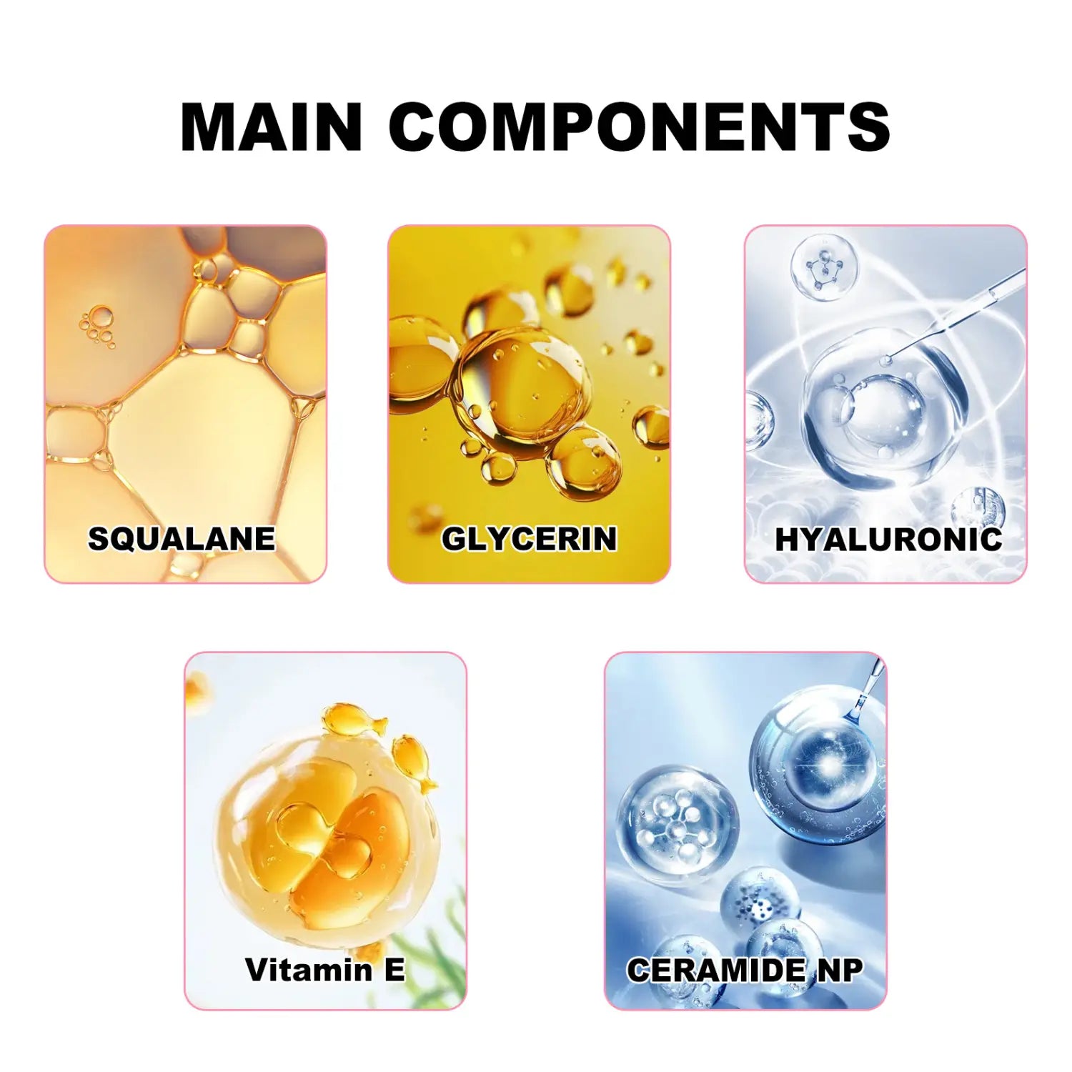 Zutaten: Squalan, Vitamin E, Ceramid NP, Hyaluronsäure, Glycerin