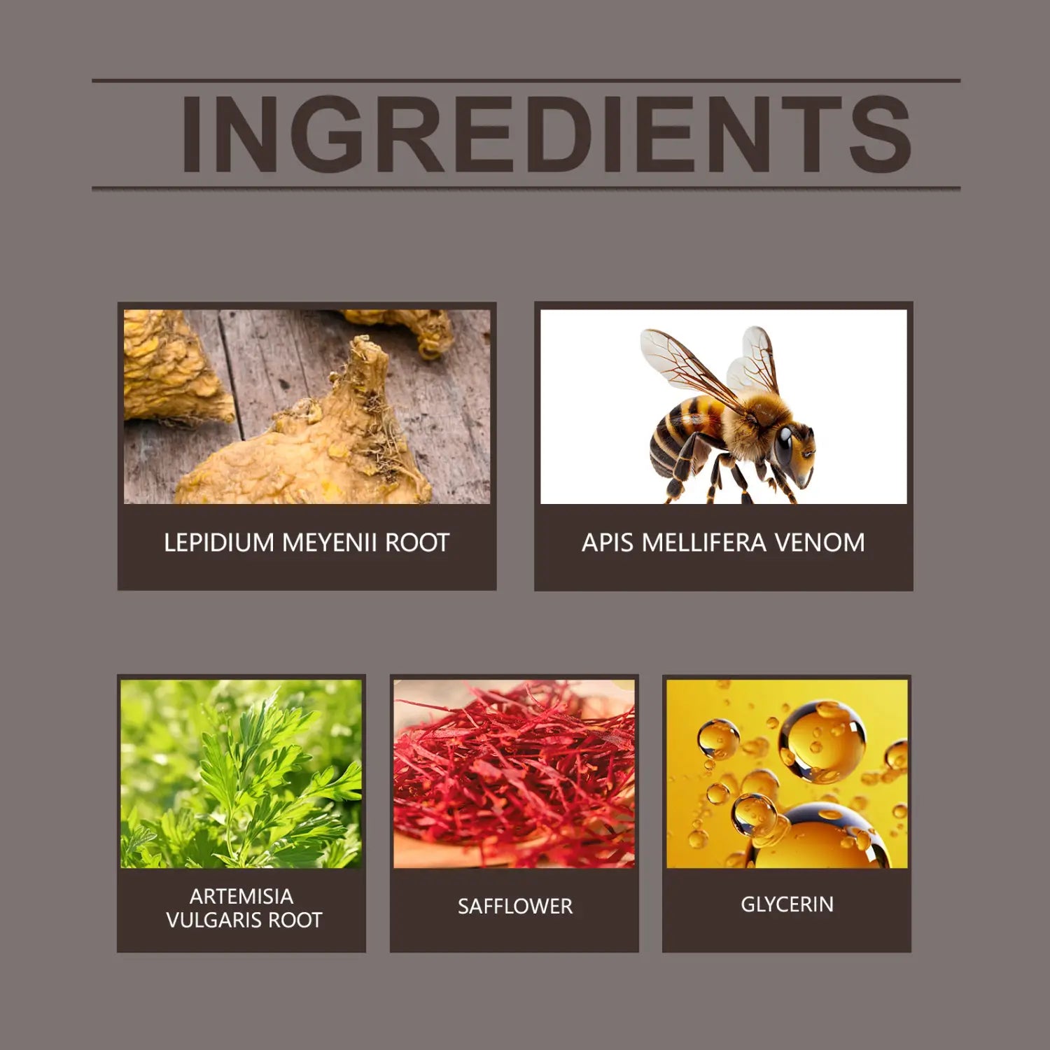 Inhaltsstoffe: Wirkstoffe: Macagan, Bienengift, Beifuß, Saflor