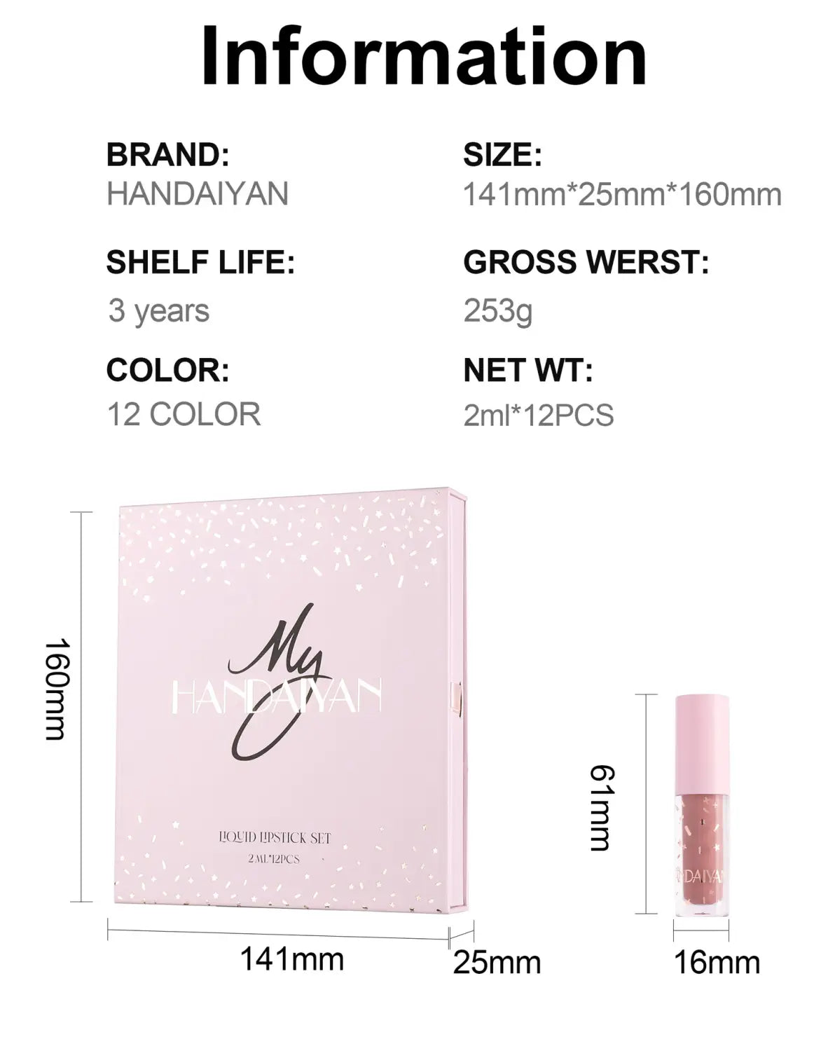 Värv: 12 värvi huuleglasuuri komplekt