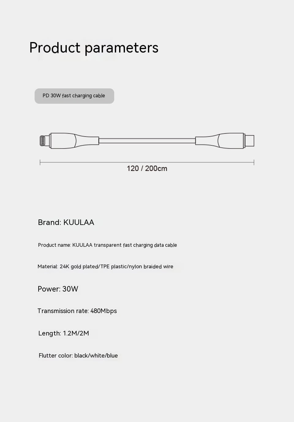 Longueur : 1,2 m, 2 m