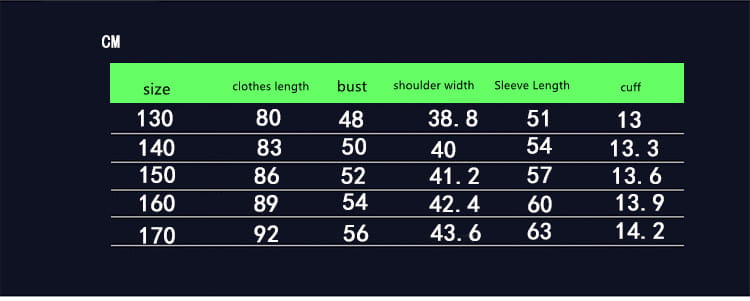 Taille appropriée : 130 cm, 140 cm, 150 cm, 160 cm, 170