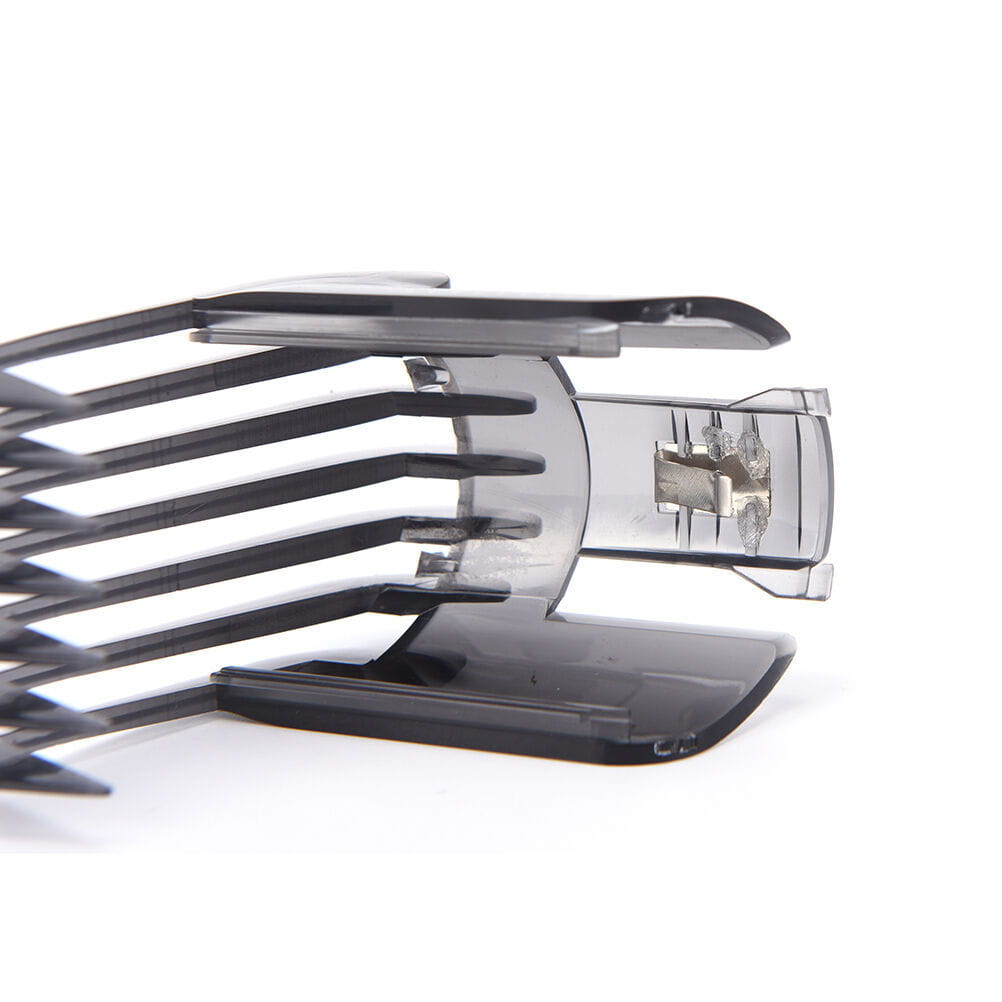 Fekete ABS és fém pozicionáló fésű a haj ollóhoz és az elektromos ollóhoz