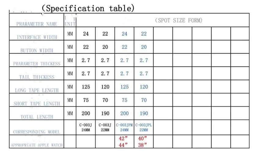| Méret (mm) | 38/40 mm | 42/44 mm |