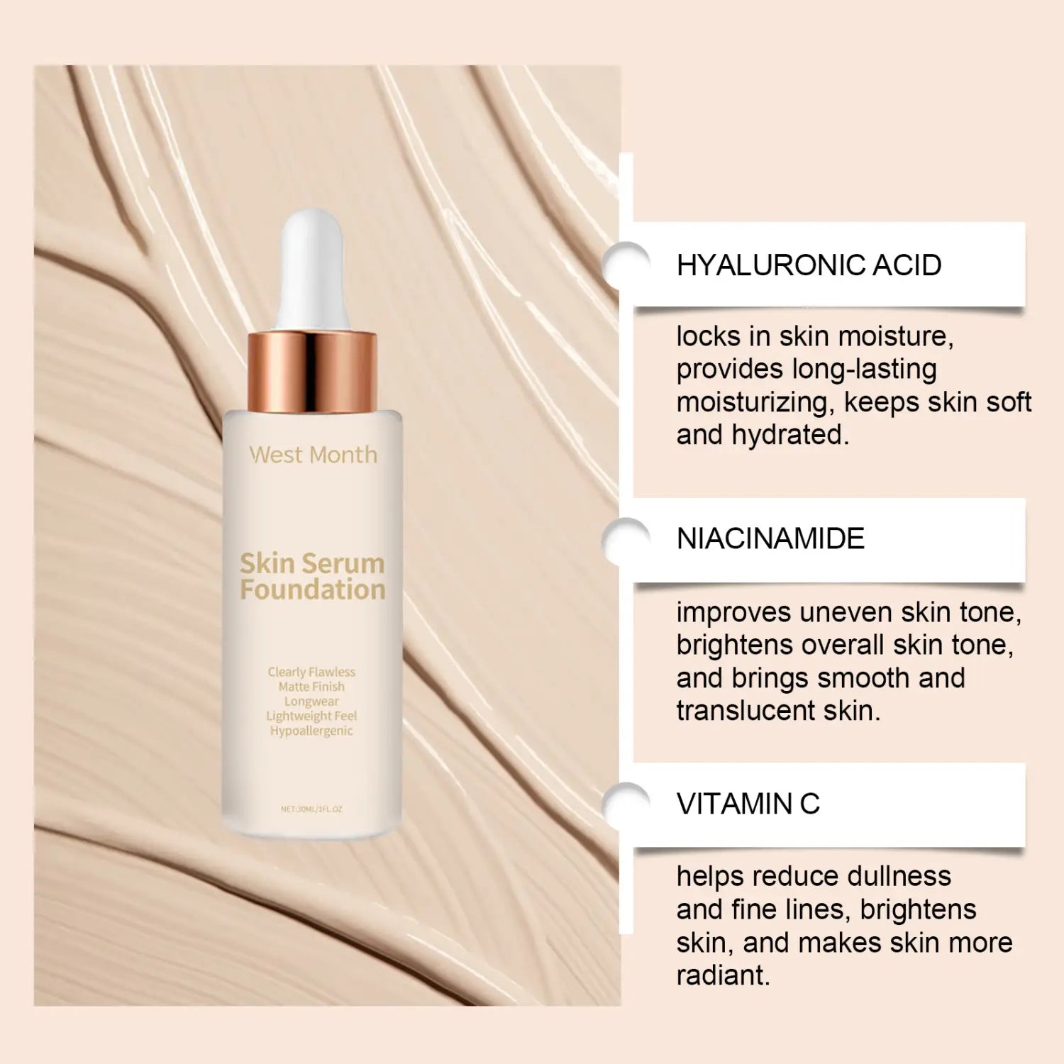 Ingrediënten: Hyaluronzuur, nicotinamide, vitamine C, sheaboter, titaniumdioxide