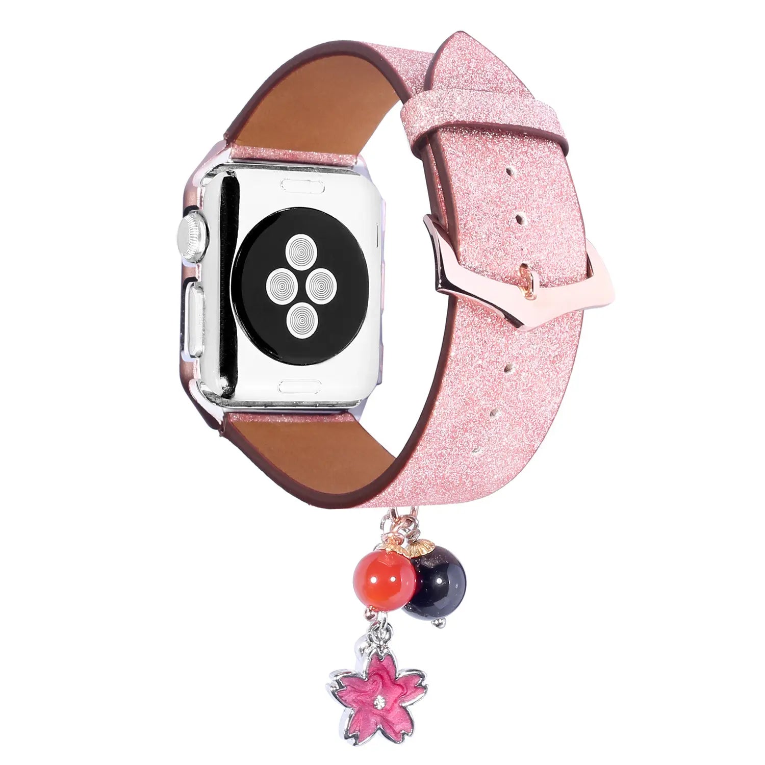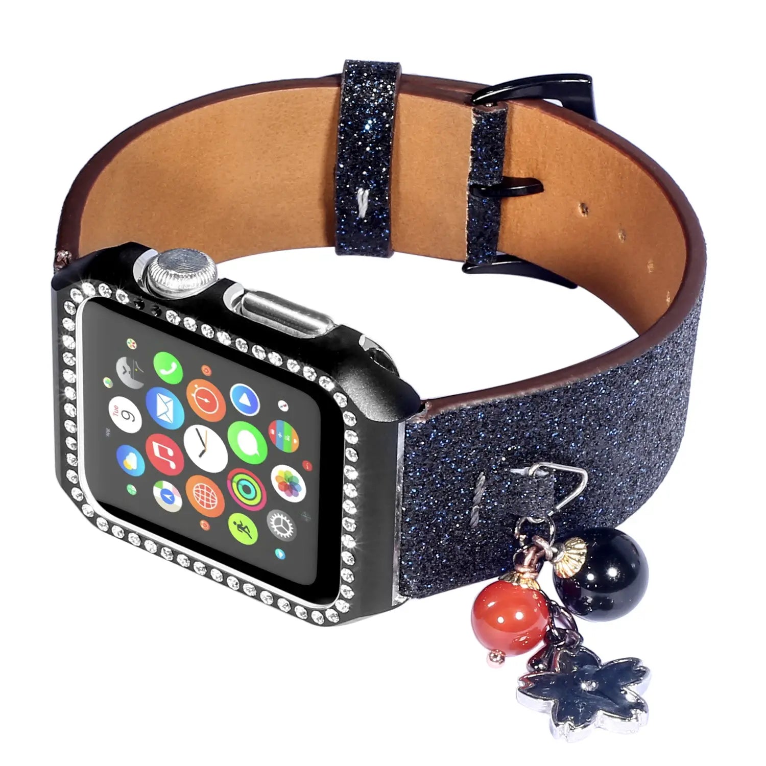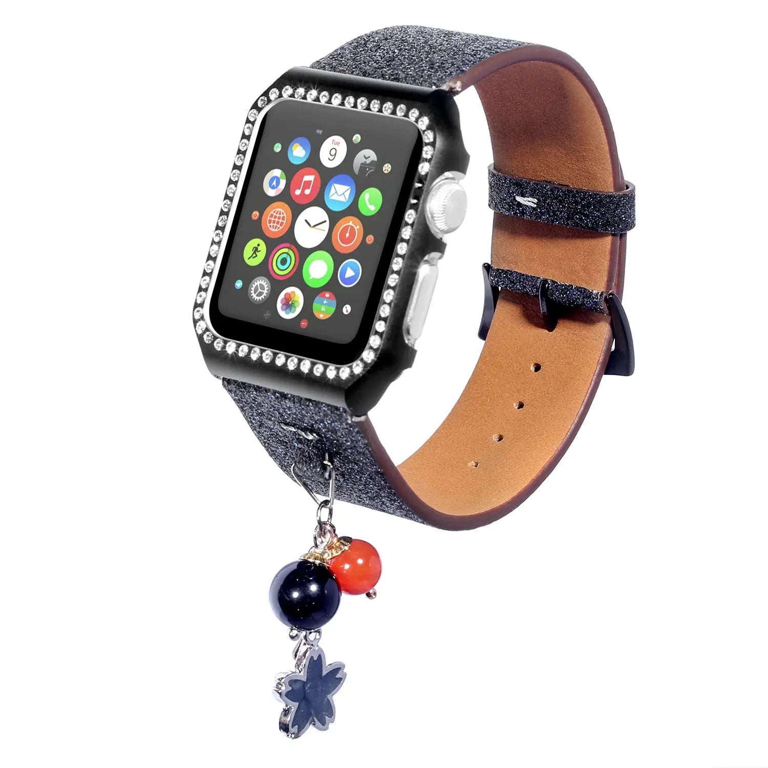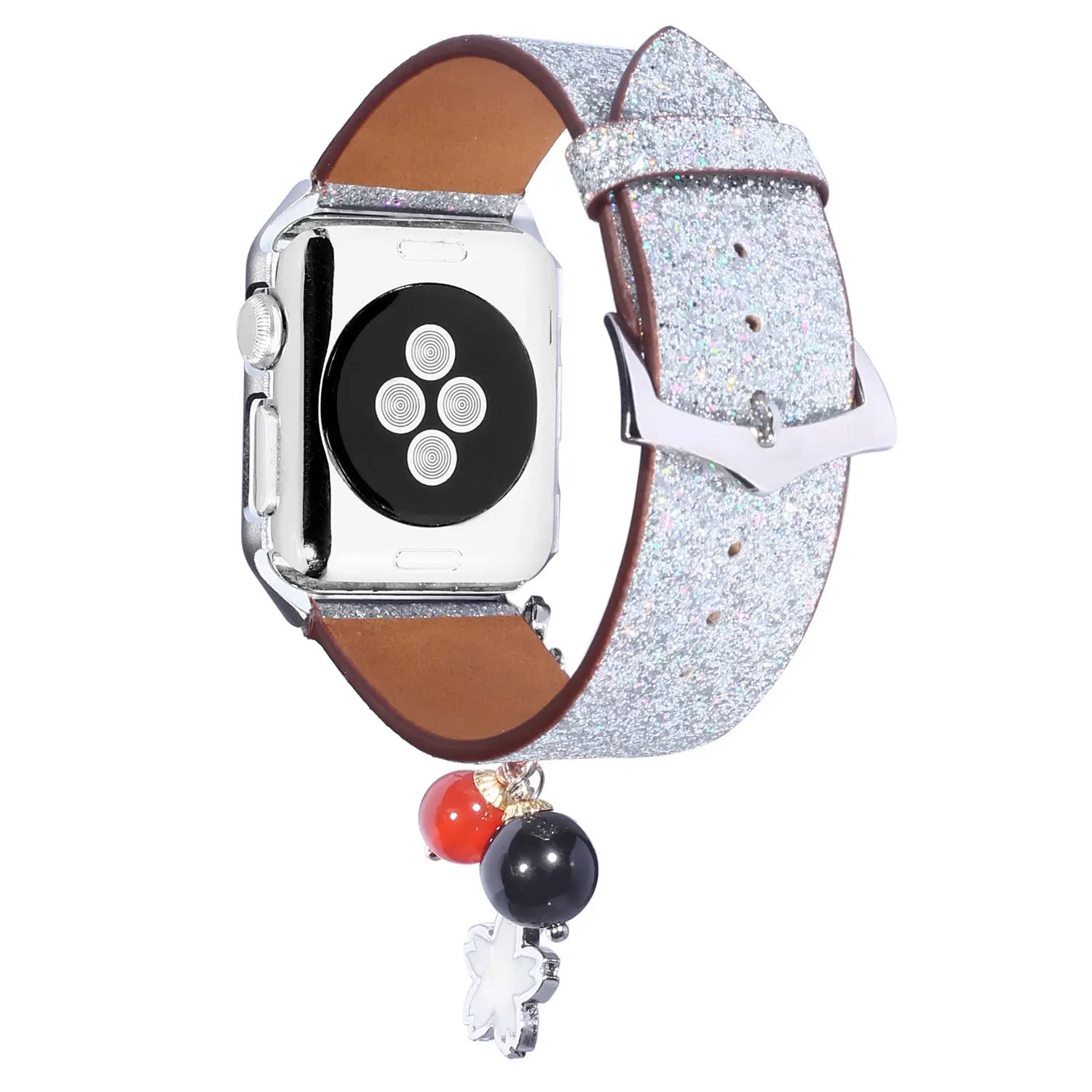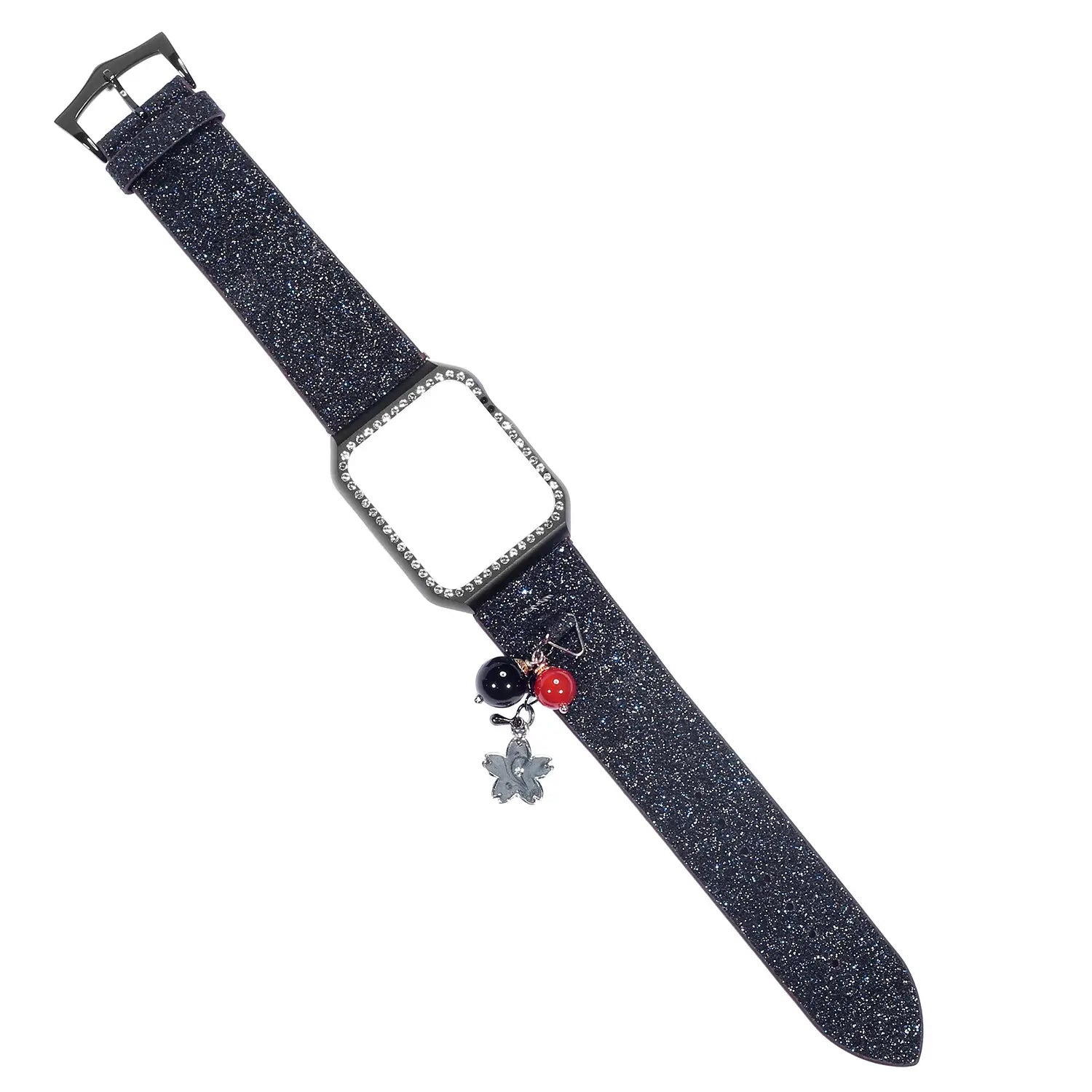 Geschikt voor AppleWatch smartwatches van de eerste, tweede en derde generatie met glinsterende pailletten ster bal hanger leren band