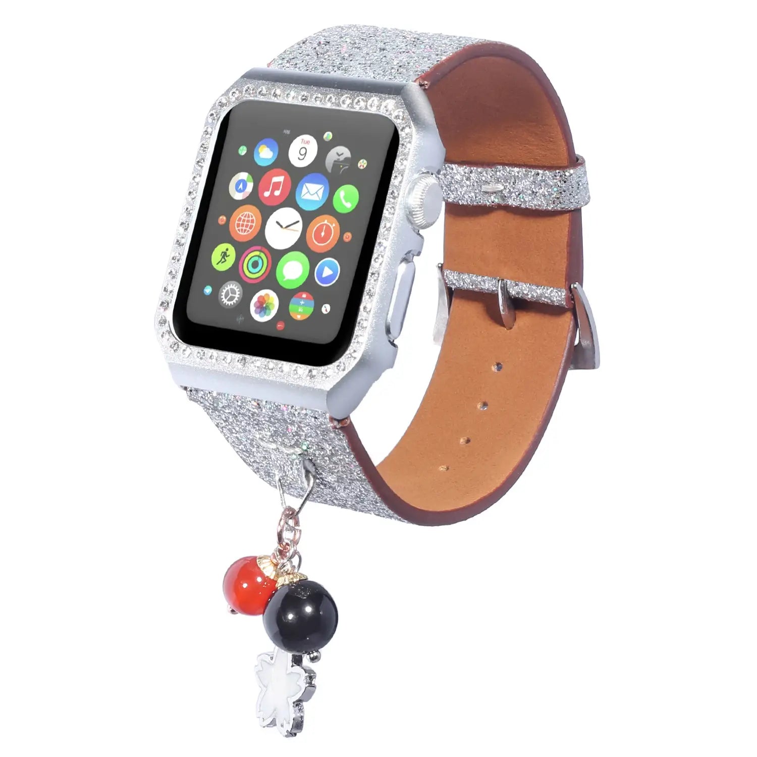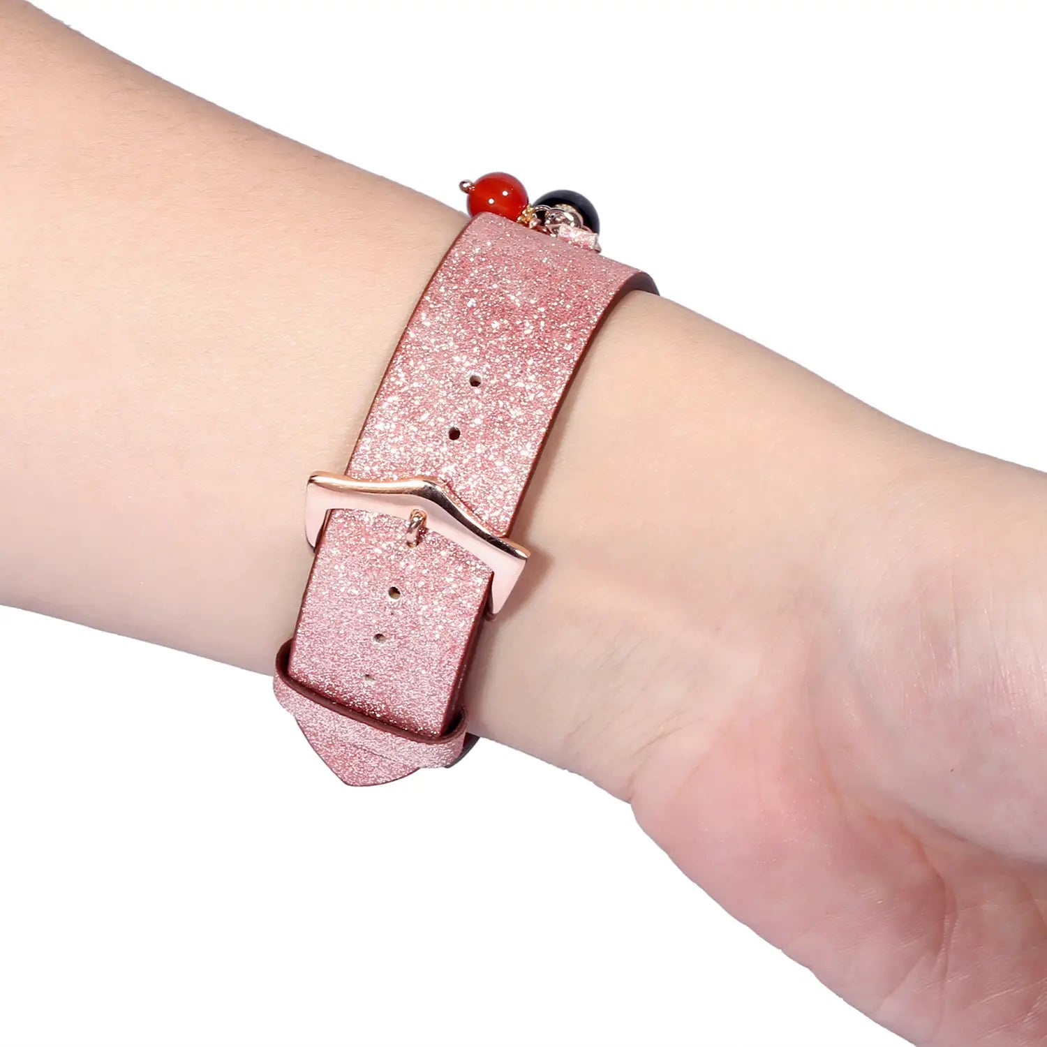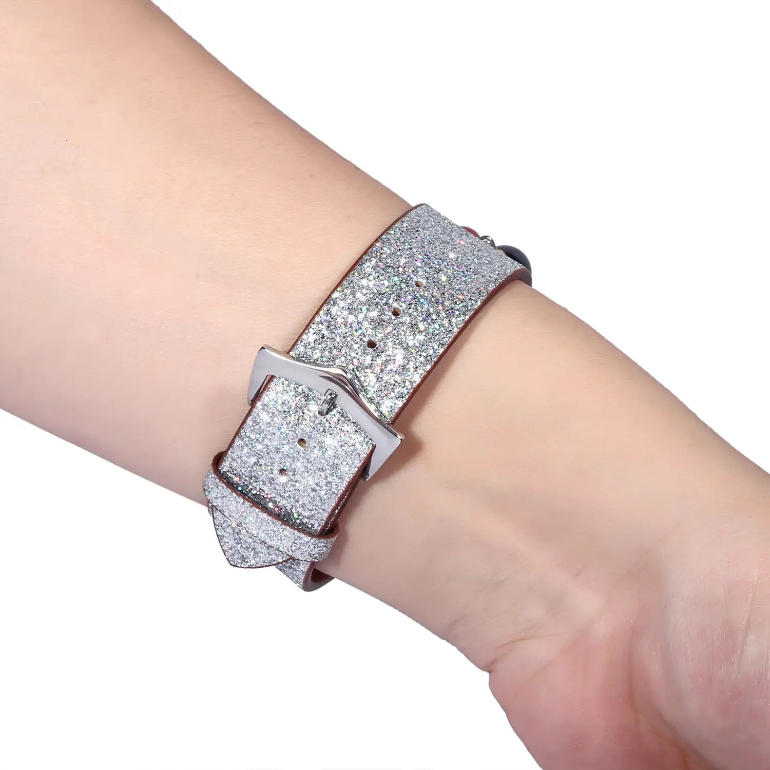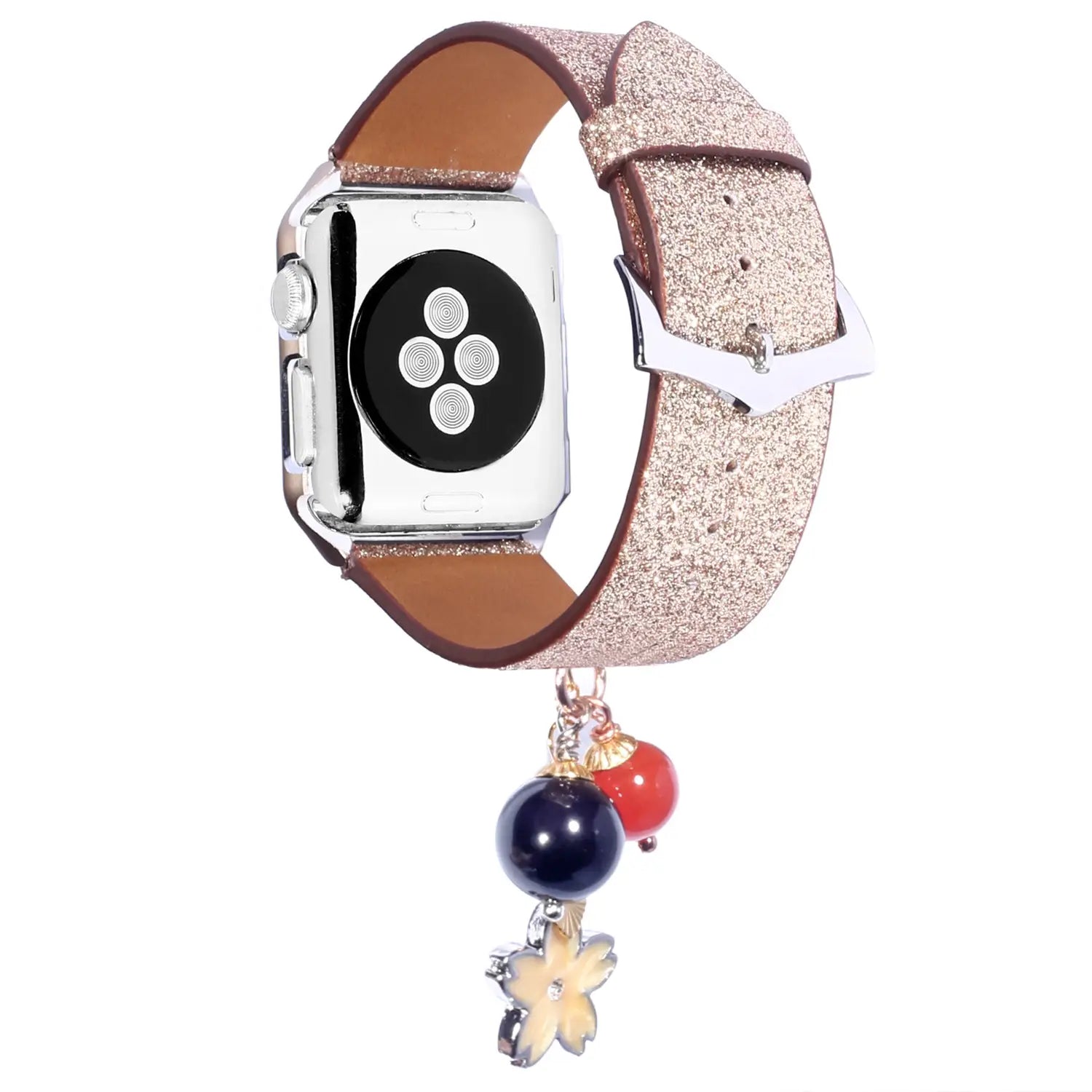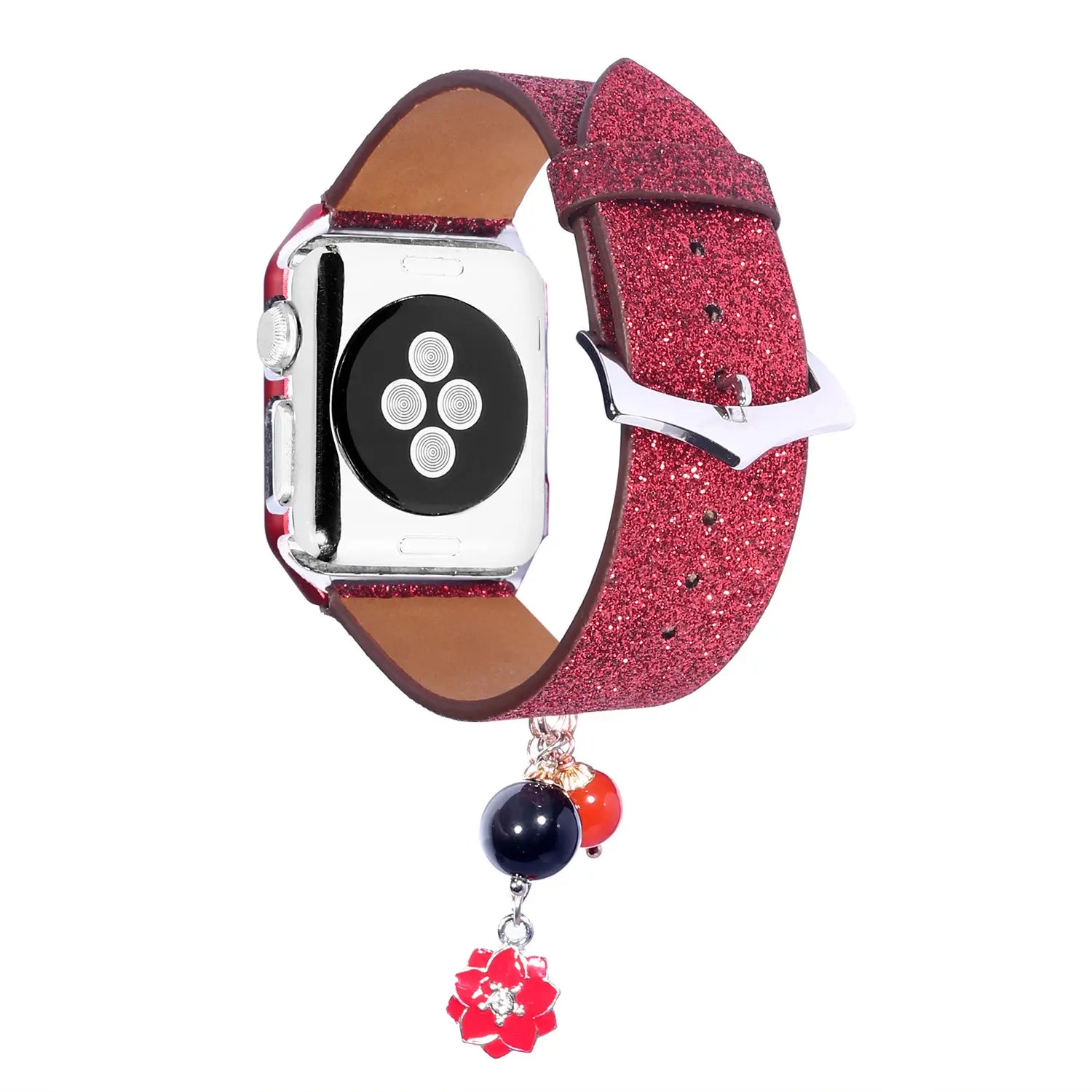 Geschikt voor AppleWatch smartwatches van de eerste, tweede en derde generatie met glinsterende pailletten ster bal hanger leren band