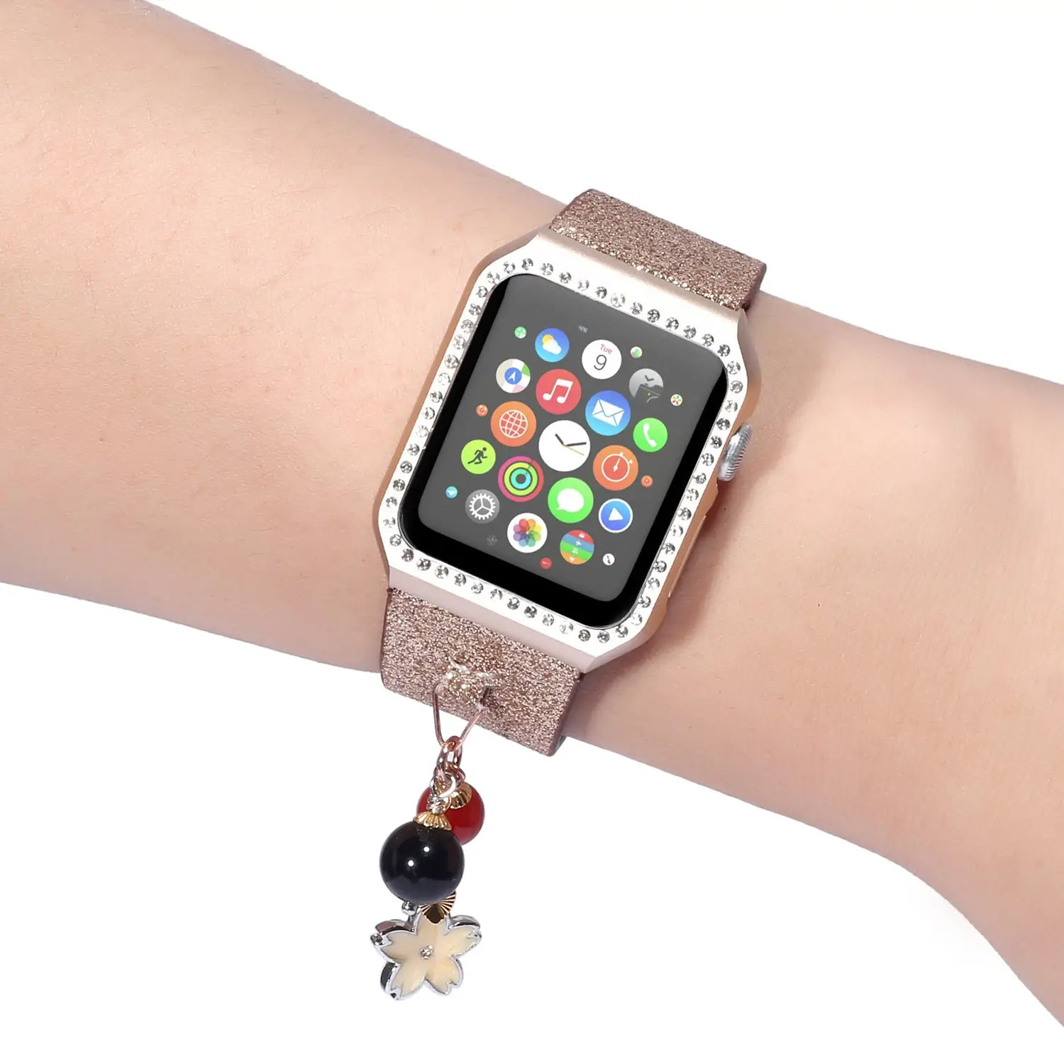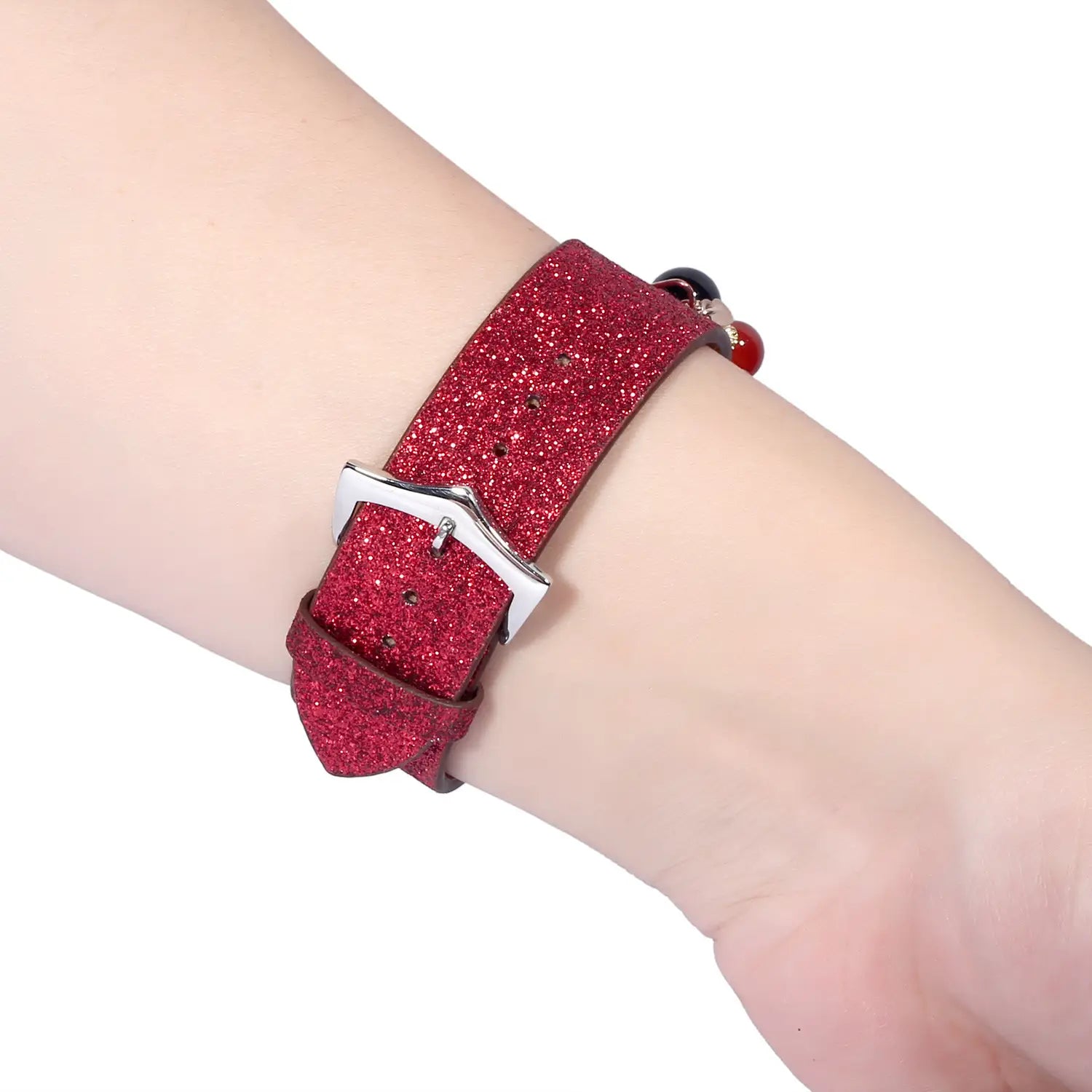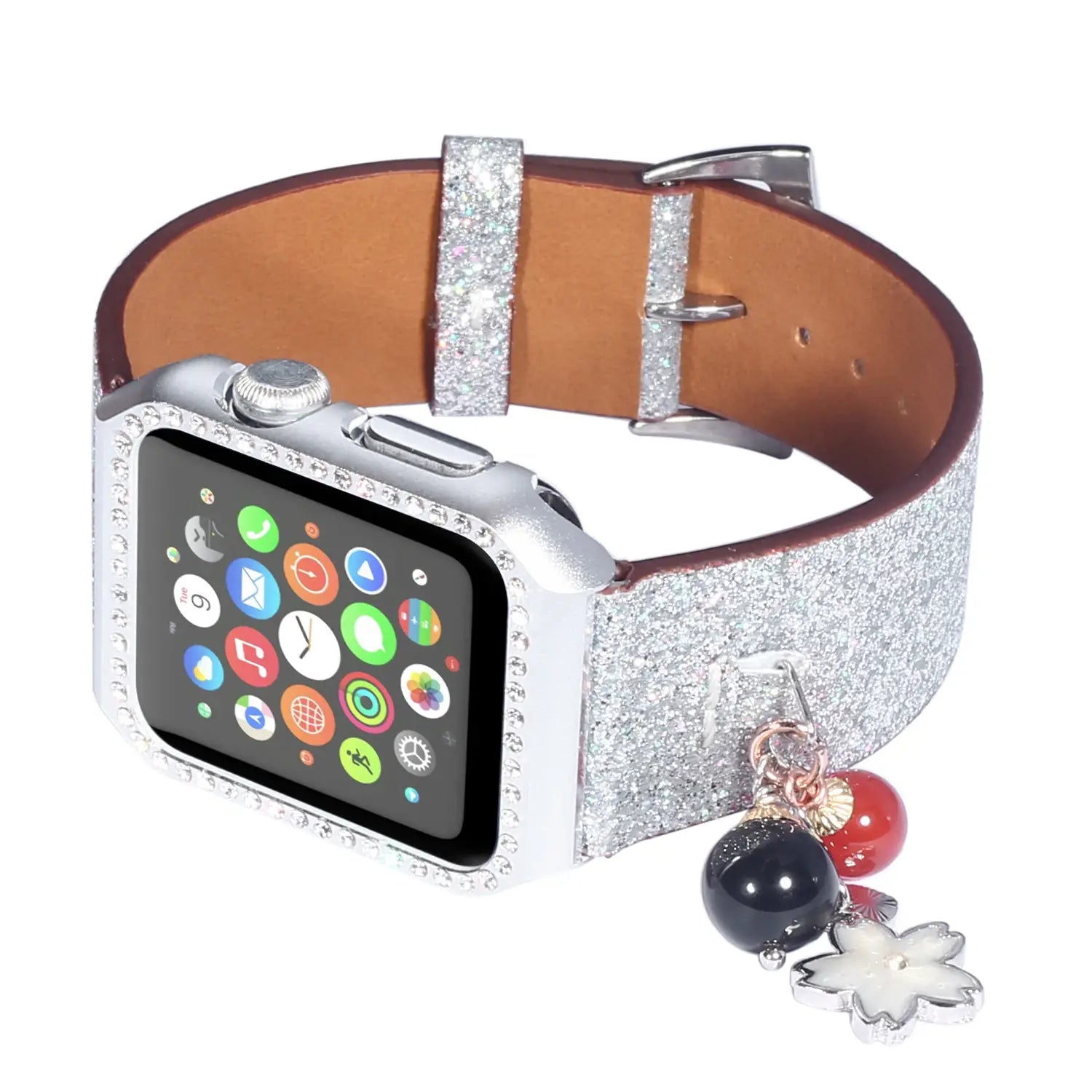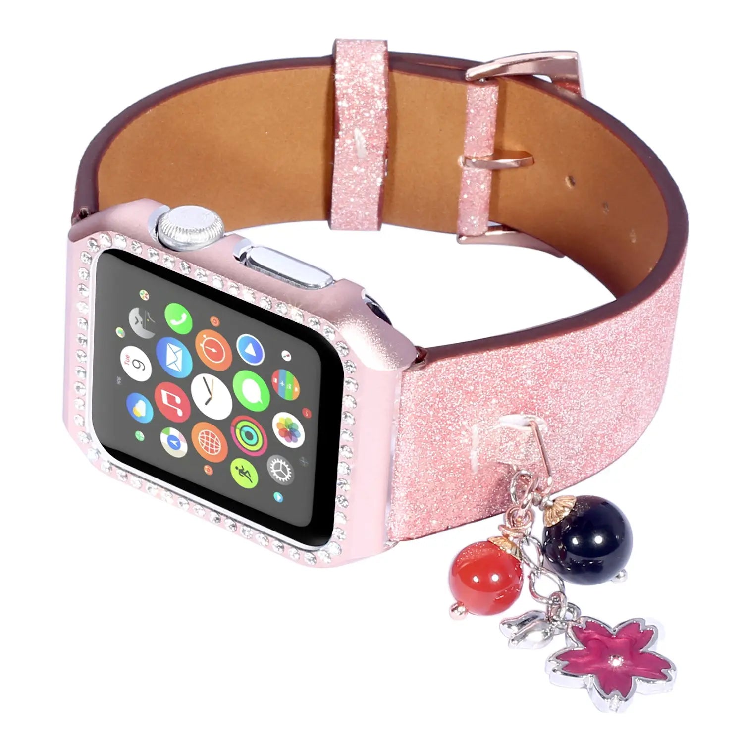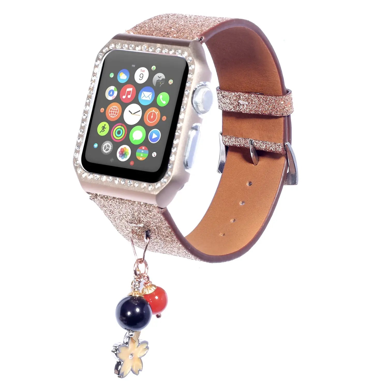 Geschikt voor AppleWatch smartwatches van de eerste, tweede en derde generatie met glinsterende pailletten ster bal hanger leren band