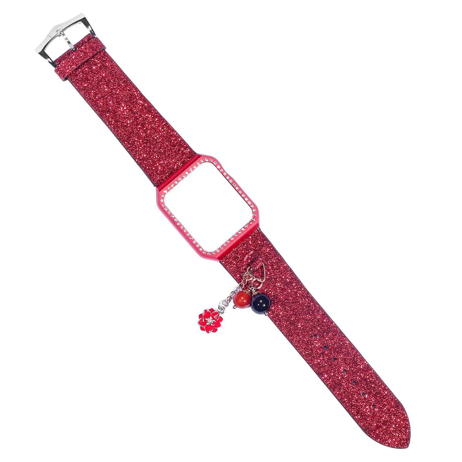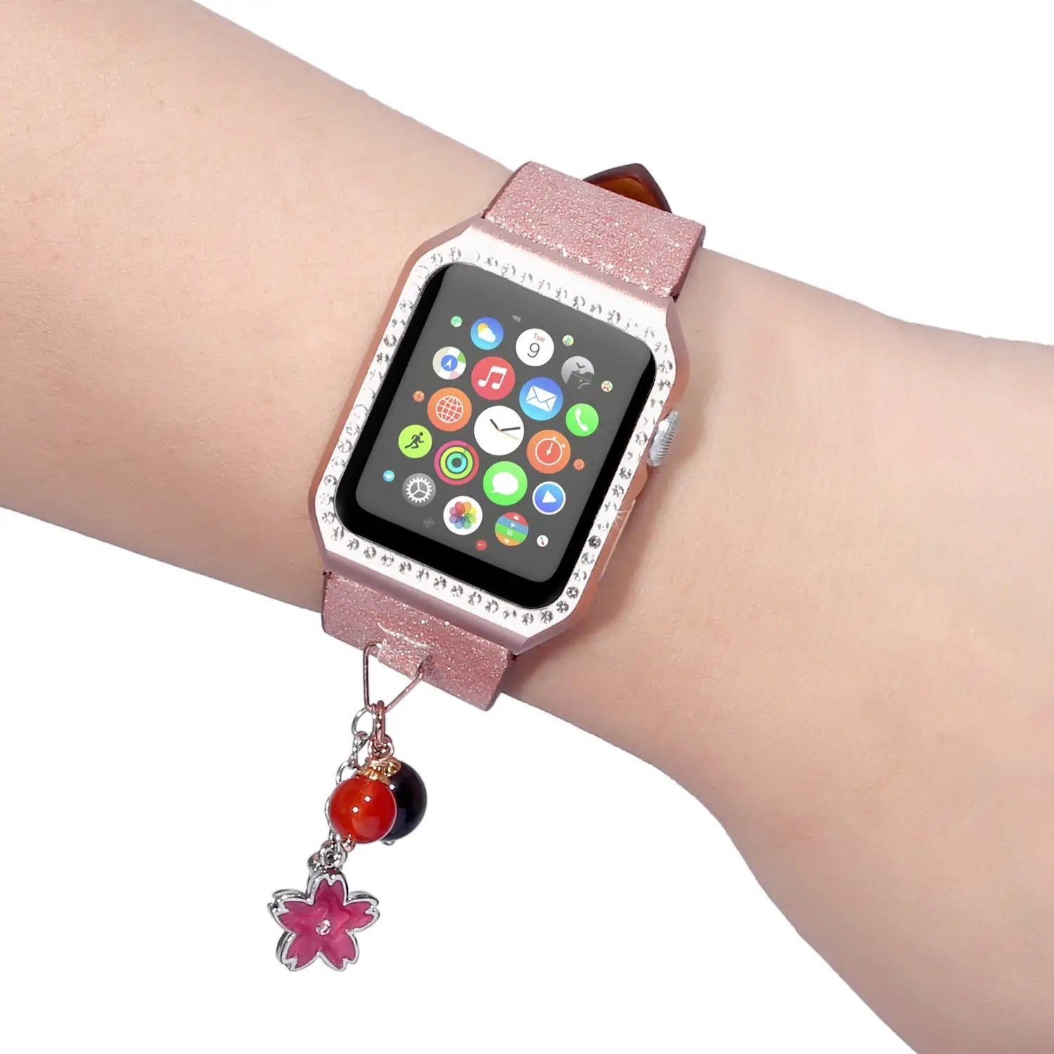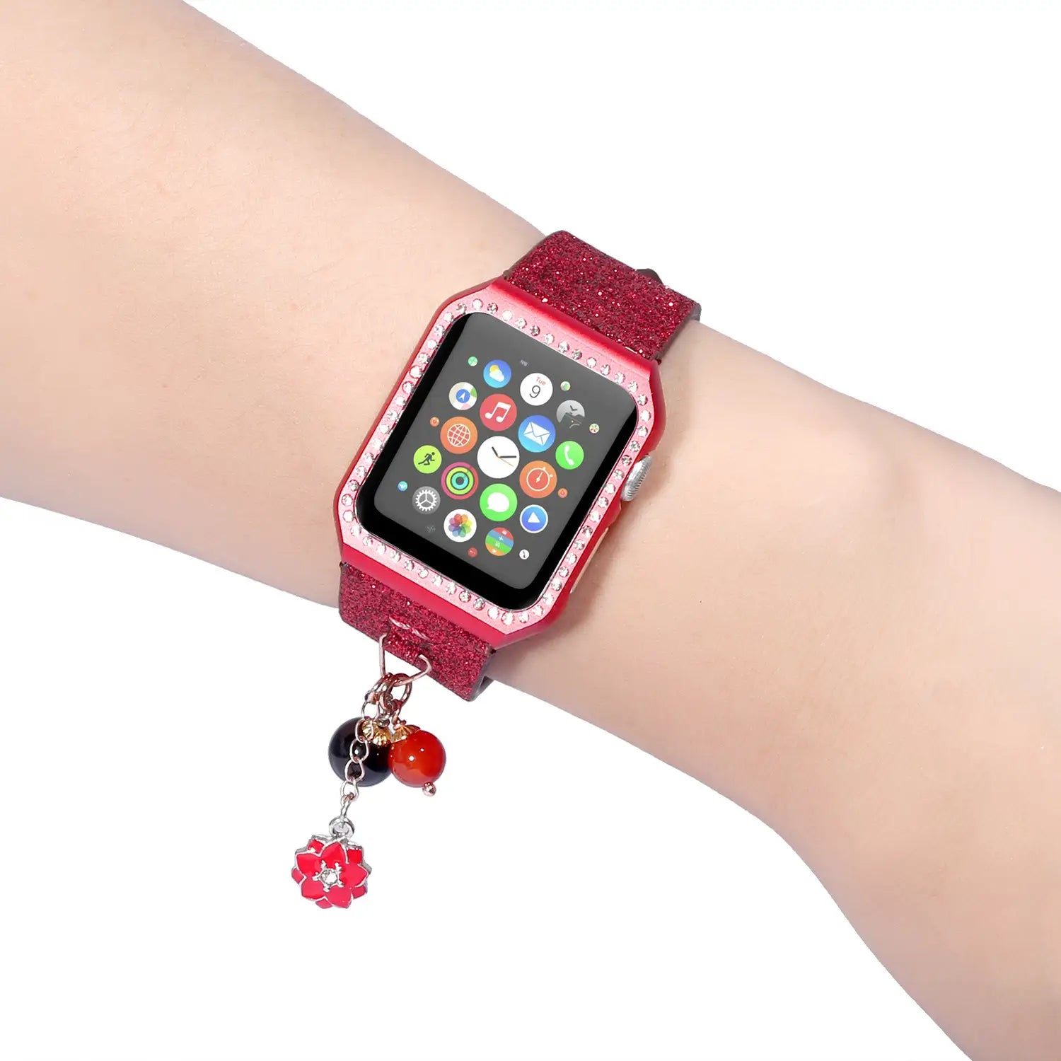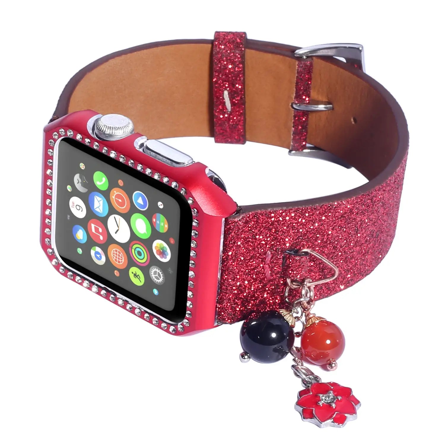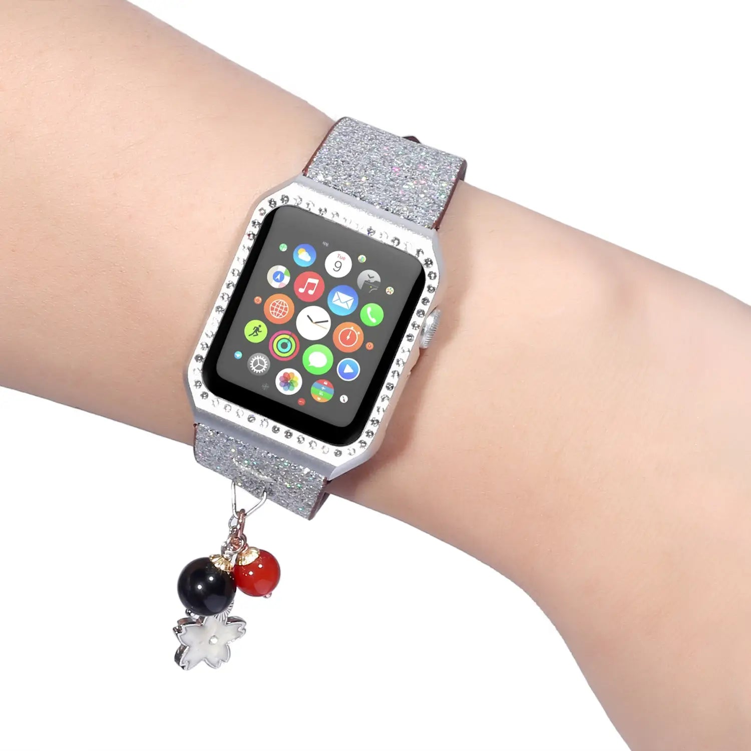 Geschikt voor AppleWatch smartwatches van de eerste, tweede en derde generatie met glinsterende pailletten ster bal hanger leren band