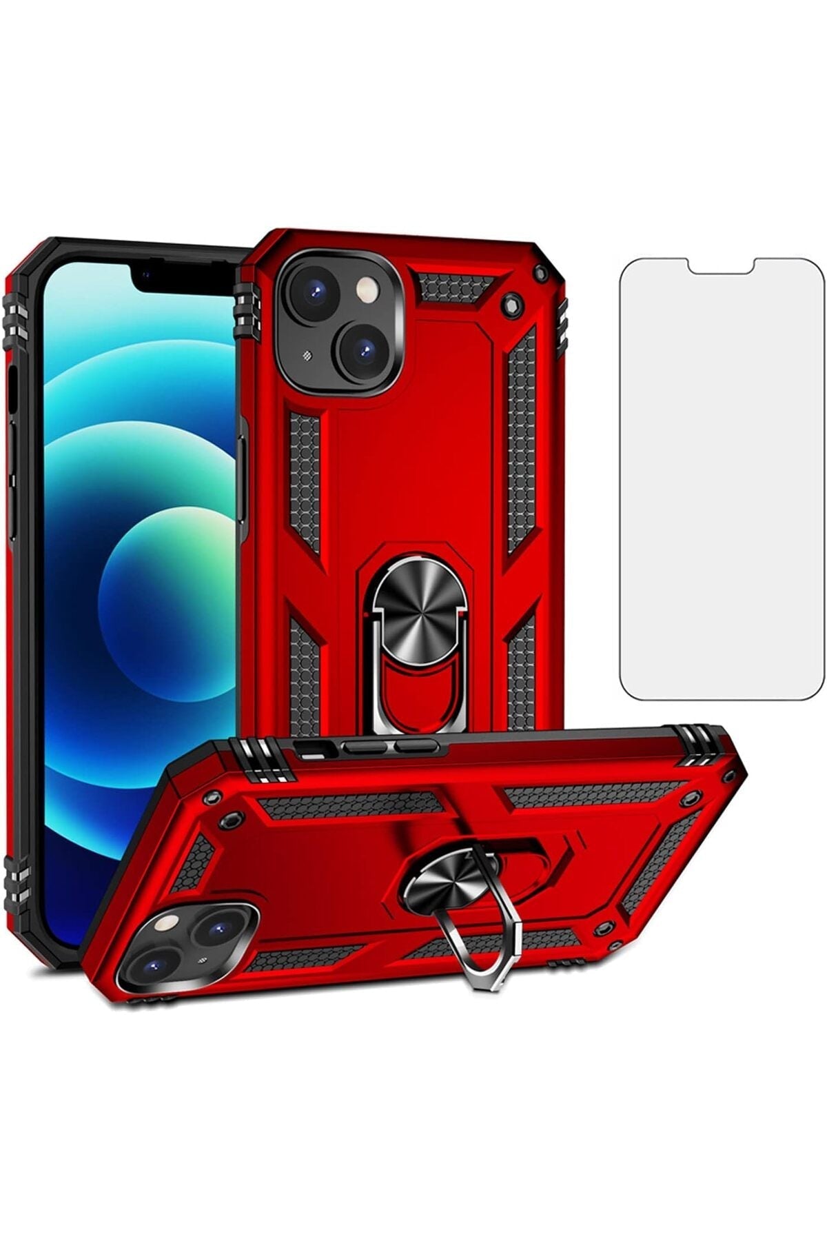 The armored tank case with ring provides complete protection for your device against impacts and includes a screen protector in the package.