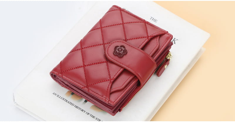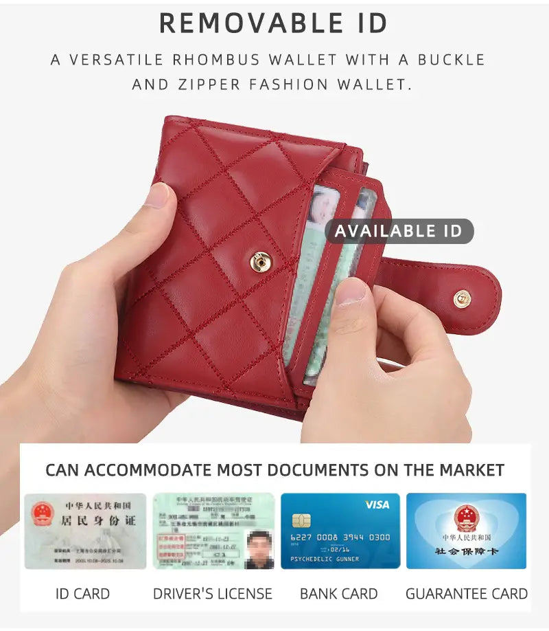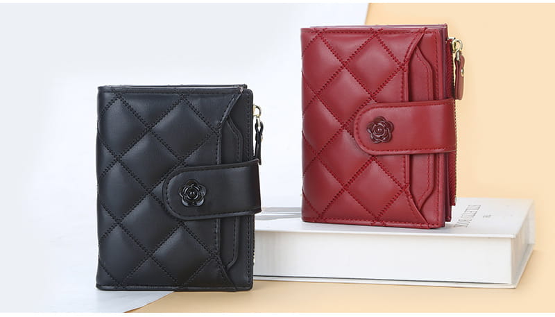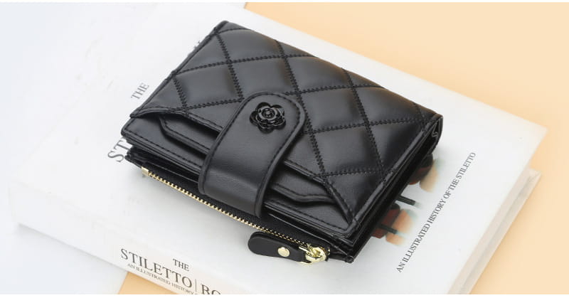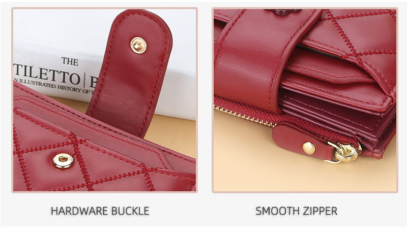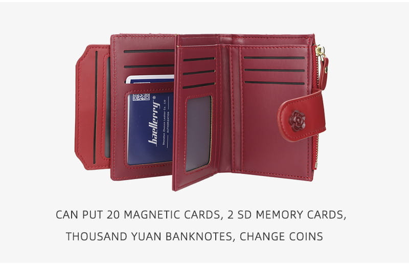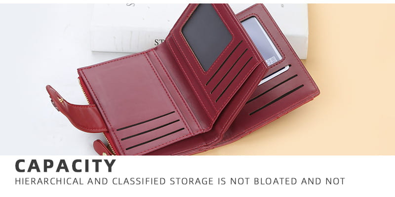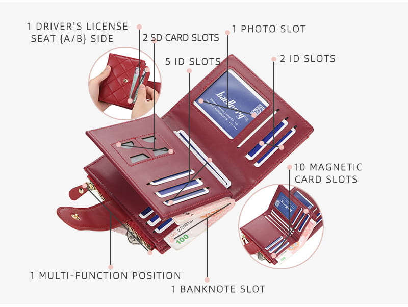 Wewnętrzna struktura torby: ciemna bateria, duży portfel, holder na zdjęcia, kieszeń na monety, kieszeń na zamek, miejsce na karty