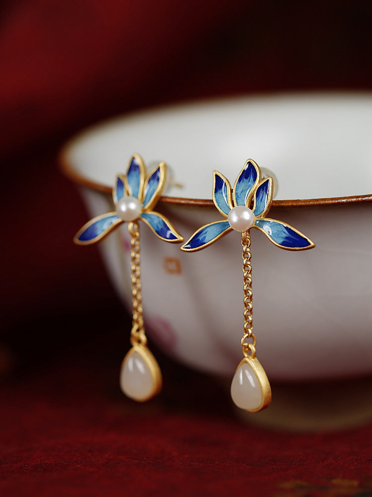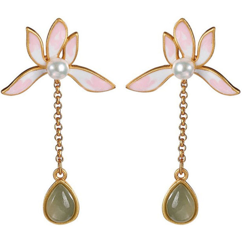 Color: gray jade lotus earrings, White Jade Lotus earrings