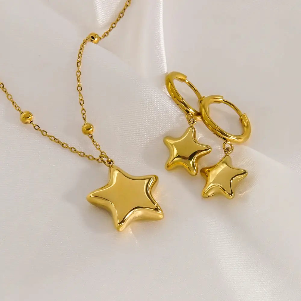 Stainless Steel Necklace and Earrings Set in Simple Style with Star Design