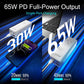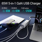 5【Powerful Output Distribution】: This usb charging hub integrates 5 charging ports and intelligently adjusts the power output according to the connected devices. Using the USB-C port alone you will get a max 65W output. Connect the USB-C port (PD 3.0) and USB-A port (QC 3.0) to charge two mobile phones or laptops simultaneously at the fastest speed in 65W and 18W.