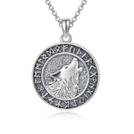 Norse Viking Wolf Necklace Inspiration: this ancient Viking medallion features Fenrir, the most infamous wolf in Norse mythology, in the center, encircled by the Elder Futhark Runes, as an amazing art, which can impress you and your lover and your friends with the pattern on it.