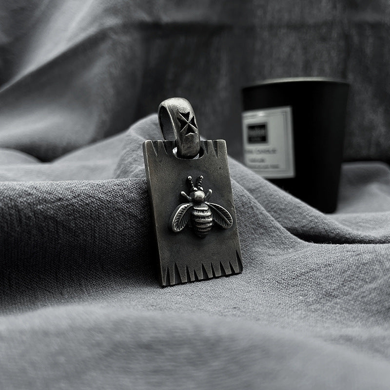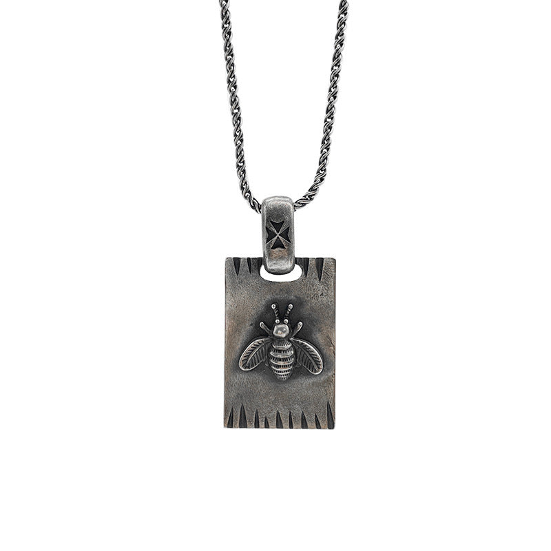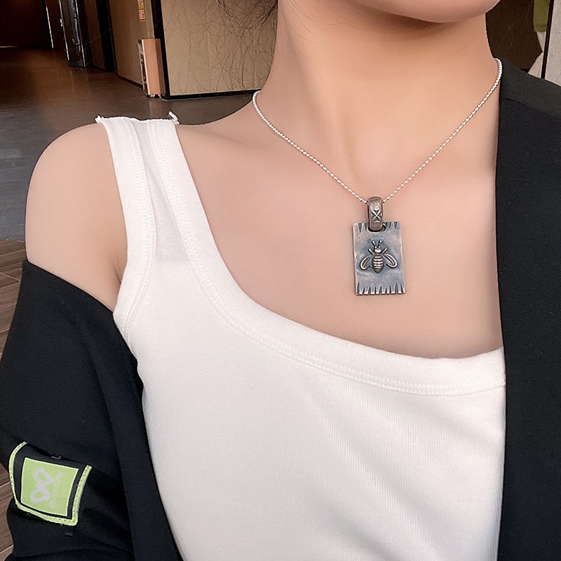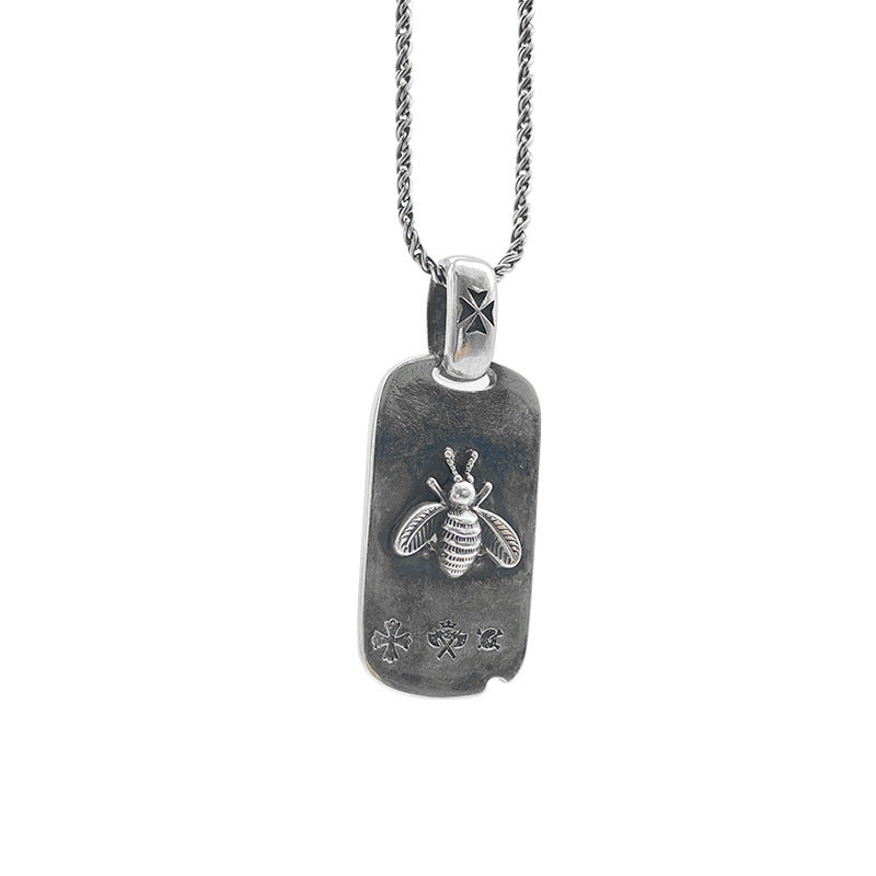 Color: dark square plate, dark square plate pendant ball bead chain (45cm), retro round brand, retro round plate pendant men's bracelet (60cm)