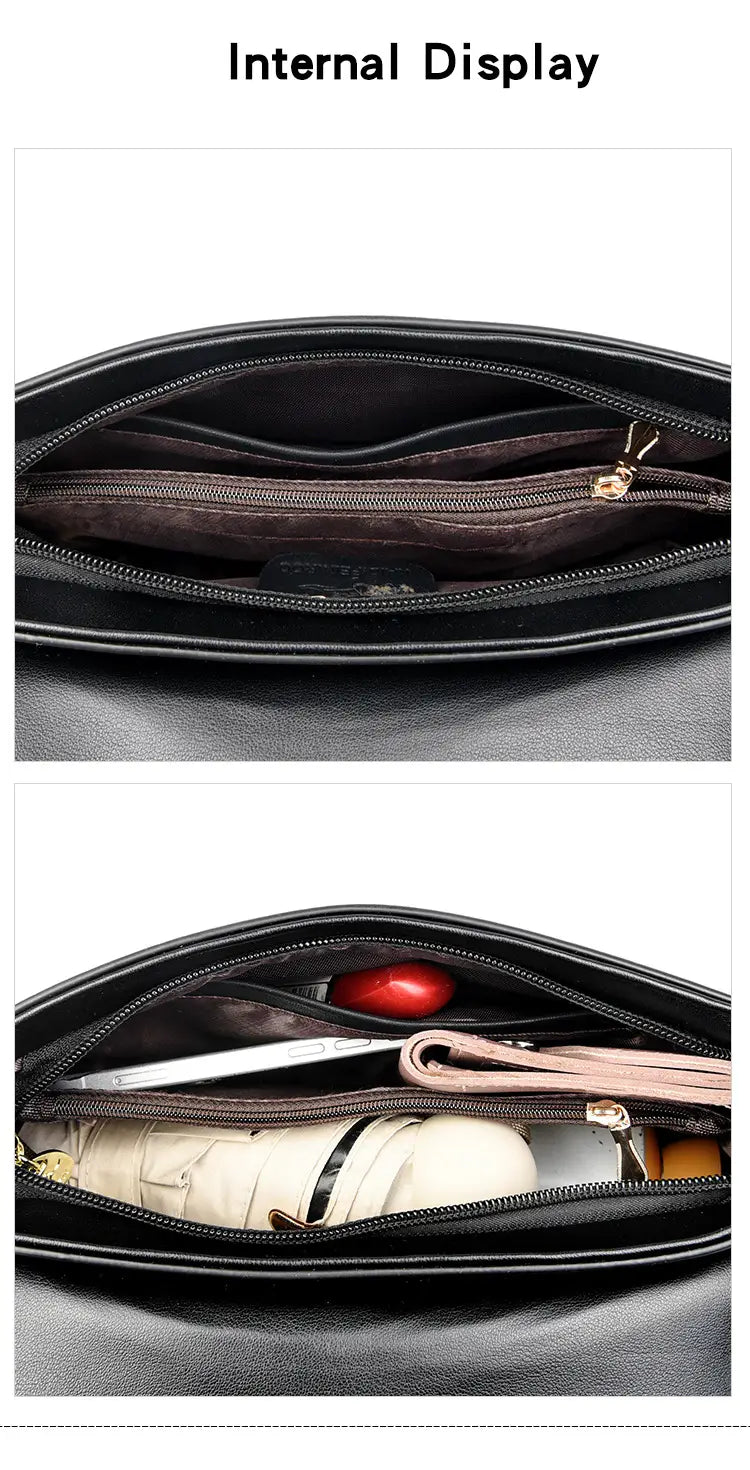 Estrutura interna da bolsa: bolsa de troca com fecho, bolsa para telemóvel