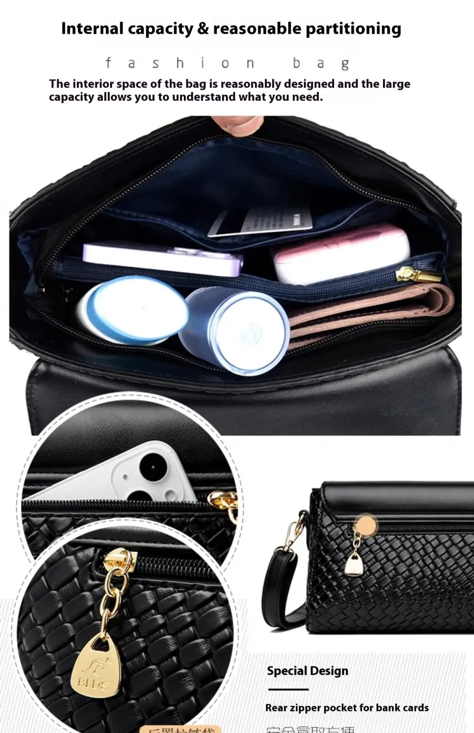 Estrutura interna da bolsa: bolsa com fecho
