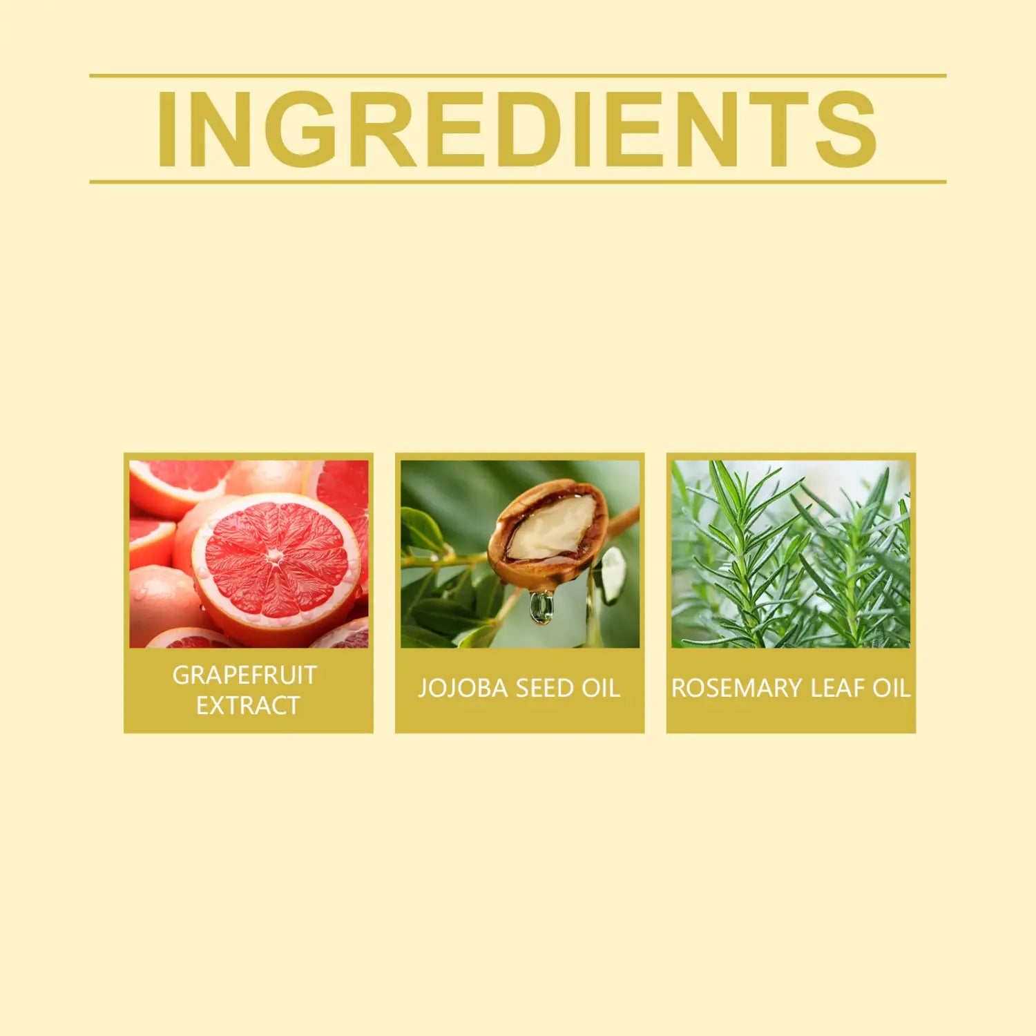 Ingredientes: extrato de toranja, óleo de semente de jojoba, alecrim com óleo