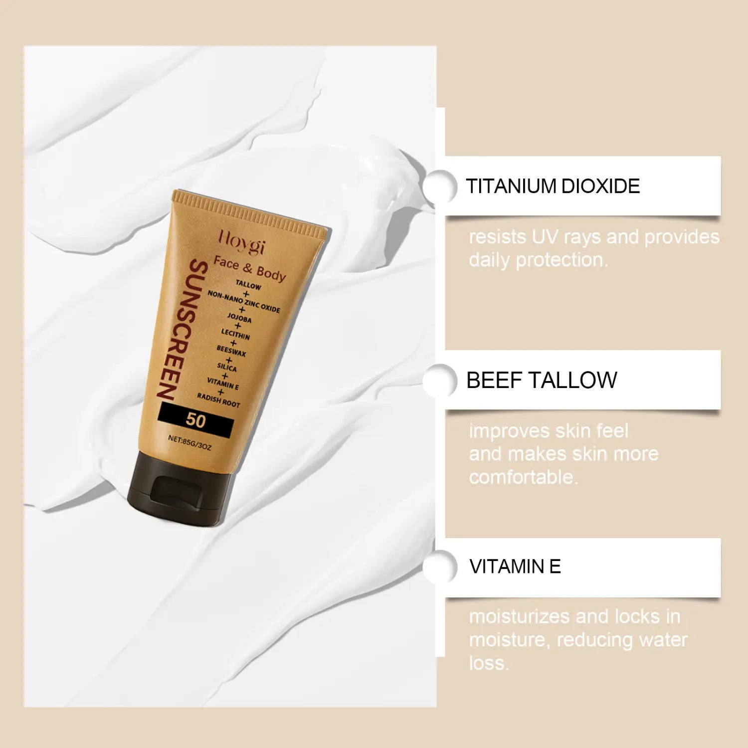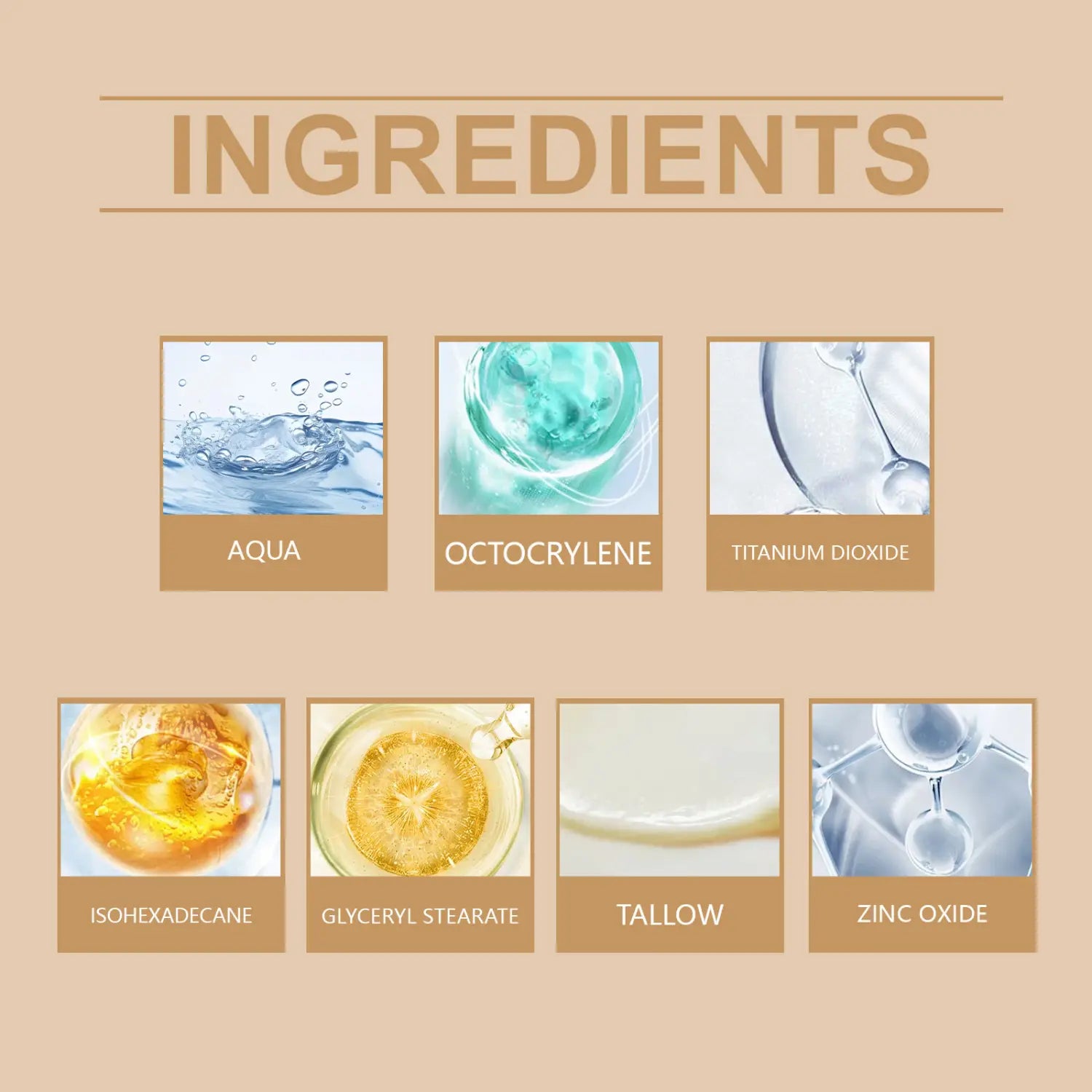 Ingrediente: apă, Oaklin, dioxid de titan, izohexadecan, stearat de gliceril, talpă, oxid de zinc, ulei de jojoba, lecitină, ceară de albine, dioxid de siliciu, vitamina E (tocoferol), extract de radă de siliciu